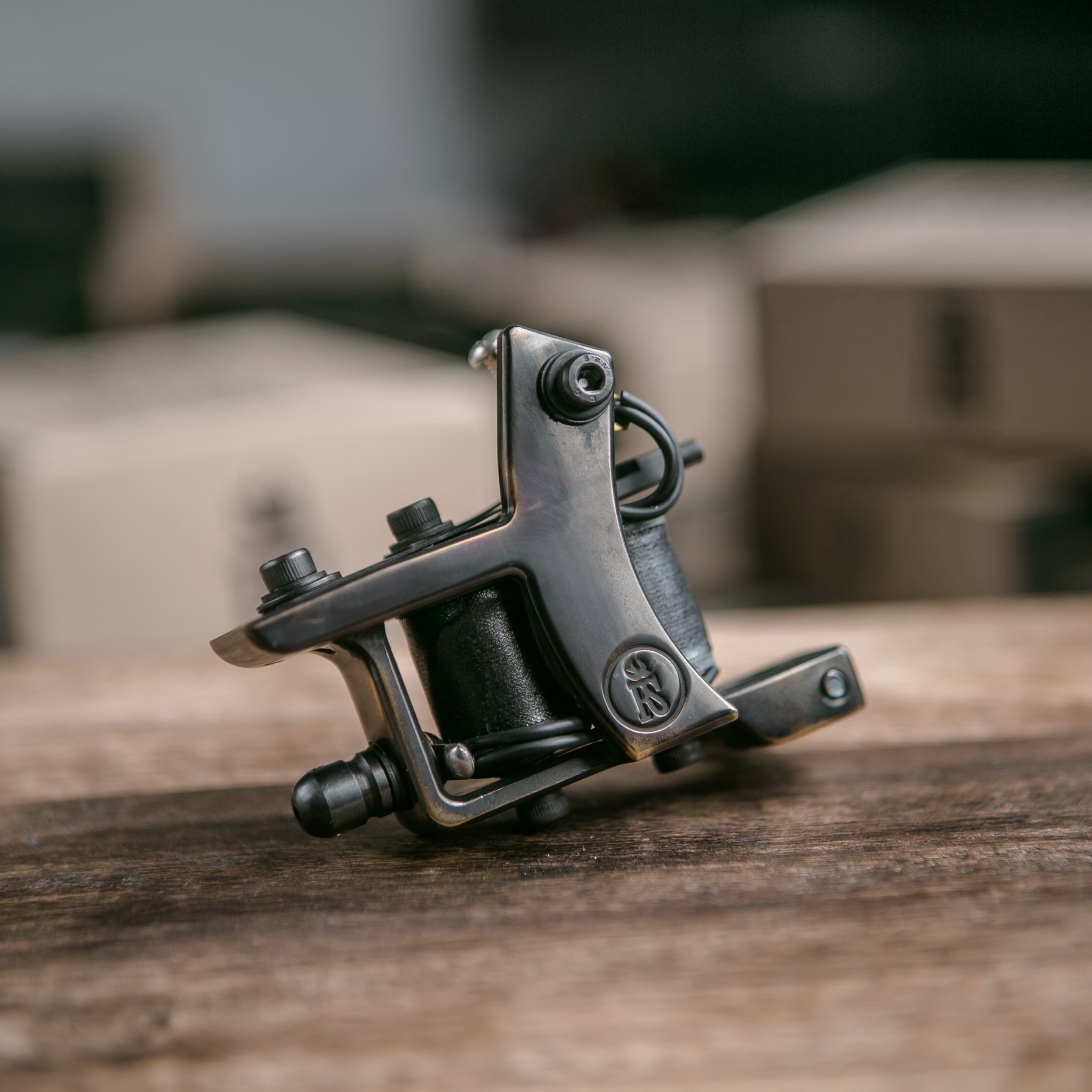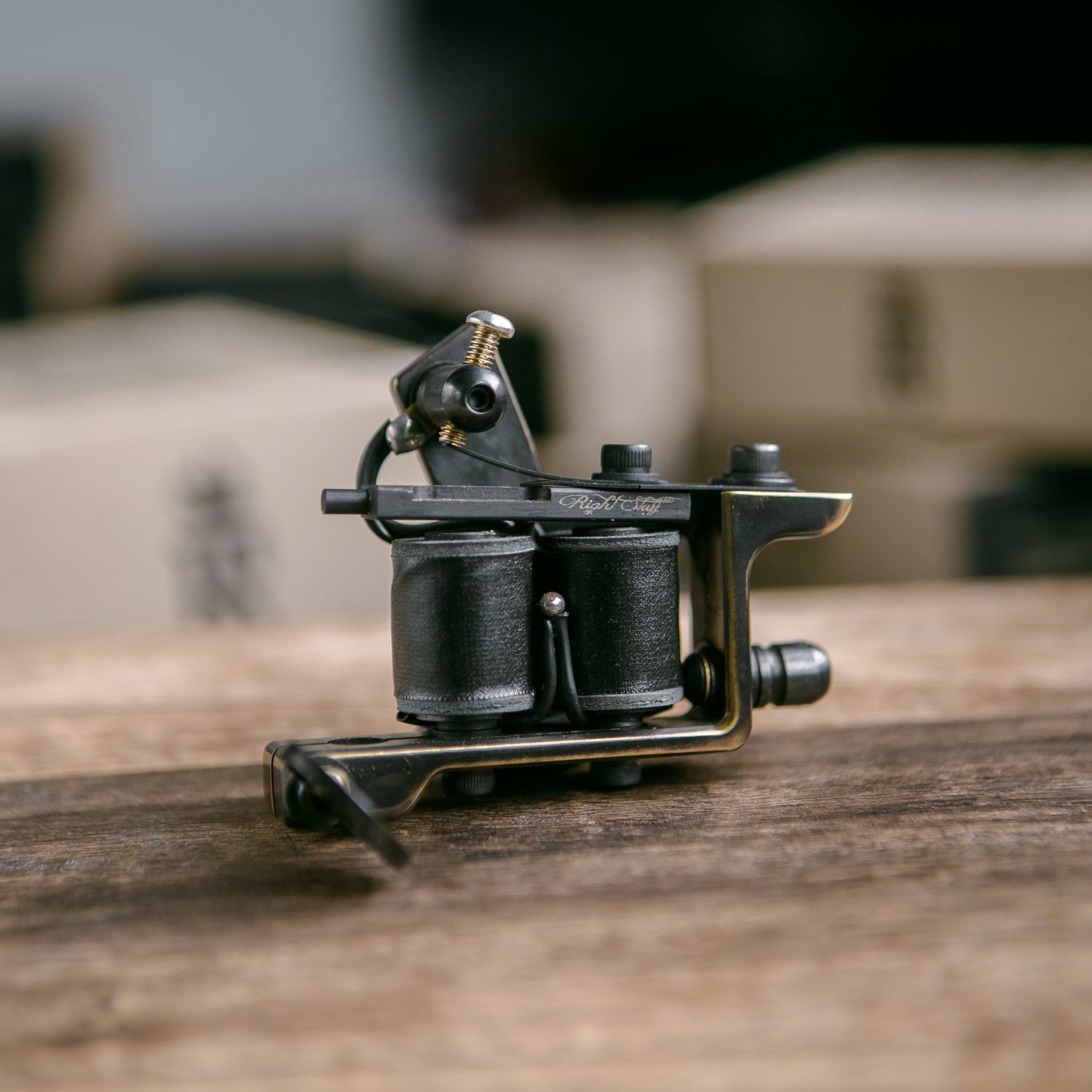 Questa moderna fodera Right Stuff con telaio in bronzo, progettata per creare velocemente contorni perfetti, si utilizza con aghi Rl da 3 a 9. La macchina funziona con una frequenza di 160 Hz e un voltaggio di 6,6 V. Le sue bobine da 26 millimetri hanno otto avvolgimenti.