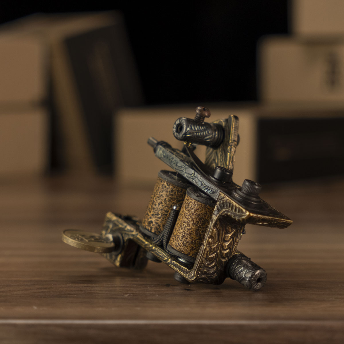 Questo articolo con spire da 26 mm e 9 avvolgimenti, la cui struttura è creata in bronzo patinato, ha un peso di 220 grammi. All'inizio potrebbe sembrarti un po' pesante. Tuttavia, questo dispositivo è stato progettato proprio per la tua comodità, quindi presto potrai apprezzare la macchina. Quando crei il profilo di un tatuaggio per un cliente, non sentirai alcuna vibrazione o solo un leggero tremolio. Usa aghi da 7 a 14 Rl con questo liner; fallo funzionare a 140 Hz di frequenza e a 6,5 V di tensione.